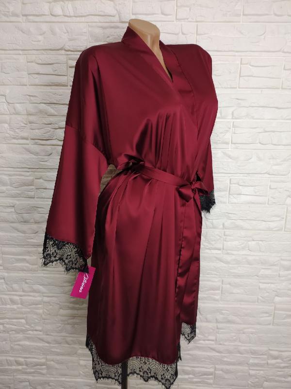 М'який, ніжний шовк Армані з ніжною мереживною обробкою. Колір бордо. Халат на запах, рукав 3/4, пояс в комплекті. Дуже приємний до тіла, та й виглядає розкішно! В наявності один розмір ХЛ-2ХЛ: підійде на об'ем стегон до 118 см. Ширина халата у развороті по стегнам 148 см. Довжина 98 см. Цей розмір є в наявності. Запрошую відвідати мій магазин, щоб переглянути і інші халати, а також безліч різних піжам, різні кольори та типи тканин. А також Постільна білизна з бязі та Ранфорс. Якщо потрібно, відправлю Укрпоштою після оплати на карту продавцю. Ціни Вас приємно здивують! Заходьте, вибирайте, відповім на всі питання.