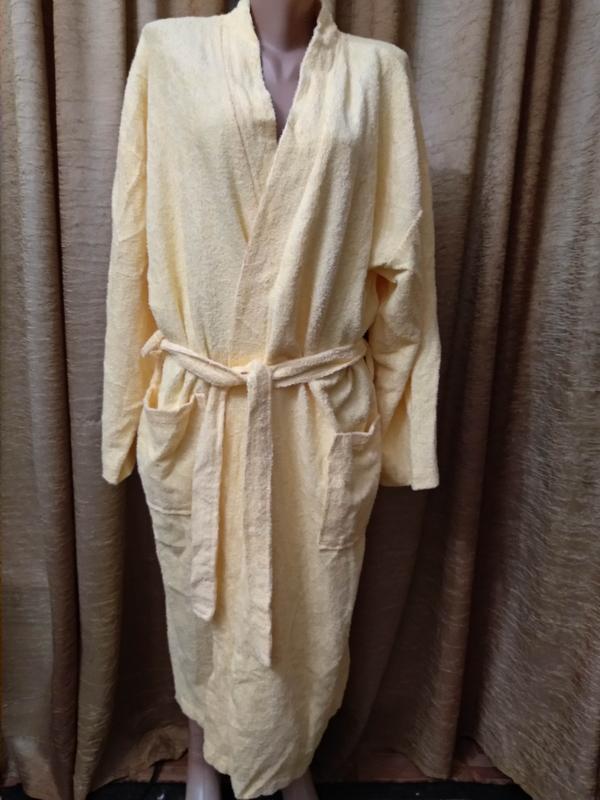 Теплый махровый халат согреет вас в холода. Носится на запах под запах. Есть карманы. Размер 48 (L). Замеры: ПОГ 65, длина 120. При подборе размера учитывайте что пижама должна быть свободной.