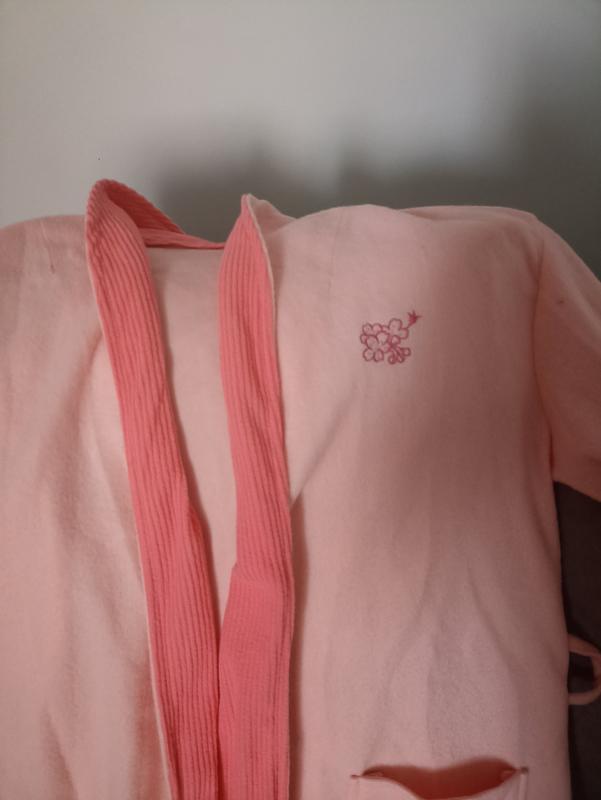 теплий халат ніжно рожевого кольору, довжина 98 см, розмір м, єдиний недолік - поясу немає