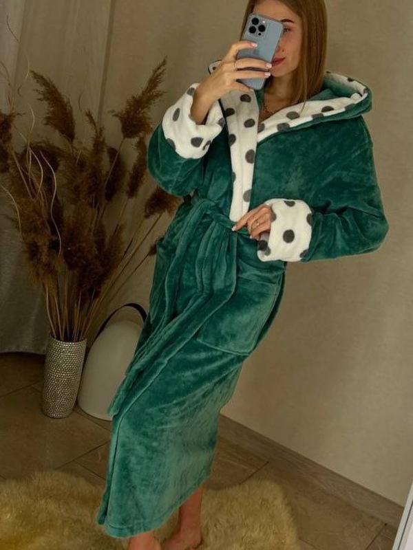 Жіночий плюшевий халат з капюшоном зелений довгий
