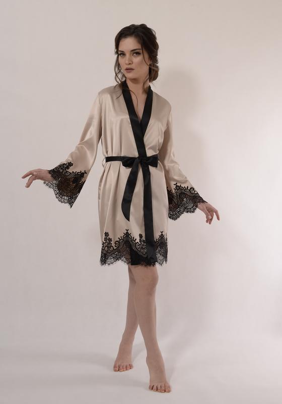 Халат сатиновий з мережевому шантілі чорного кольору.