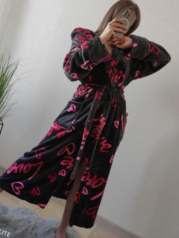 Теплий халат темно-сірого кольору домашній в універсальному розмірі на захід із поясом із кишенями з капюшоном Жіночий махровий халат — це найзручніший одяг для дому, який забезпечує тепло та комфорт. Теплий халат із поясом прогріє вас у холодну пору, а приємна тканина дарує справжній комфорт, покращуючи настрій і сприяючи повному розслабленню. М'який махровий халат надає образу таємничості, ніжності й чарівності. Цей халат із капюшоном має помірну довжину, ідеально підходить як для високих, так і для низьких дівчат. Жіночий халат великих розмірів обладнаний накладними кишенями. Халат із довгим рукавом можна носити як вдома, так і в лазні, а також на СПА. Оксамитовий жіночий халат чудово підходить для жінок, дівчат і навіть дівчаток. Маючи такий гарний хатній халат, дарує комфорт і почуття турботи. Цей ошатний трикотажний халат може бути обраний або коротким, або довгим. Плюшевий лазневий халат також підходить для чутливої шкіри, що робить його ще привабливішим варіантом для жінок різних потреб і переваг. - Розмір універсал 42-46 завдяки запаху, довгі підходять до 48 - Длина около 100см и 120см Звертаємо увагу, що колір виробу може трохи відрізнятися від відтінку, представленого на світлинах.