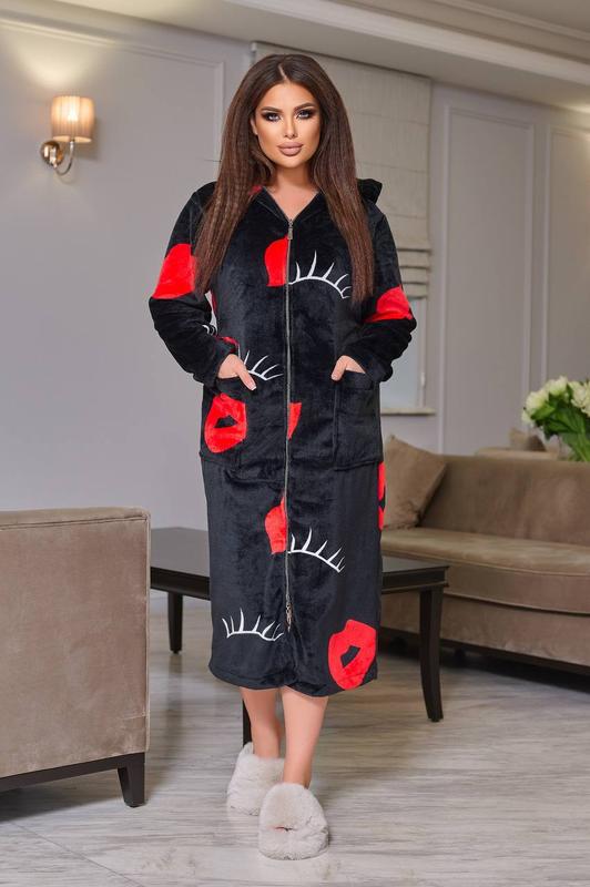 АН 8.11 ❄️❄️❄️☕️НОВИНКА ☕️❄️❄️❄️ Теплий, подовжений халат на молнії , з кишенями та поясами 💙 Теплий халат Модель 895VL/0027 Розміри : 46-48,50-52,54-56,58-60,62-64 Принти : Слова: білий, капучино , сірий Баклажан +рожеві сердечки Чорний+ червоні уста Капучино + білі сердечка Рожевий + зірочки Синій + валюта Тканина : тепла махра ( виробництво Туреччина) Теплий, подовжений халат на молнії з двома бігунками ( можна знизу розстібати), з боків дві глибокі кишені , талія фіксується канатами. Параметри моделі брюнетки ОГ105, ОТ85 ОС108, зріст 165см, на ній розмір 50-52 Заміри виробу : Розмір 46-48: Обʼєм грудей 108см Обʼєм талії 108см Обʼєм стегон 114см Довжина рукава 62см Довжина халату по спинці 128см Обʼєм біцепсу 42см Ширина плечей 50см Розмір 50-52: Обʼєм грудей 112см Обʼєм талії 112см Обʼєм стегон 120см Довжина рукава 61см Довжина халату по спинці 128см Обʼєм біцепсу 42см Ширина плечей 50см Розмір 54-56: Обʼєм грудей 124см Обʼєм талії 124см Обʼєм стегон 130см Довжина рукава 62см Довжина халату по спинці 131см Обʼєм біцепсу 43см Ширина плечей 51см Розмір 58-60: Обʼєм грудей 132см Обʼєм талії 132см Обʼєм стегон 136см Довжина рукава 62см Довжина халату по спинці 135см Обʼєм біцепсу 44см Ширина плечей 52см Розмір 62-64: Обʼєм грудей 152см Обʼєм талії 152см Обʼєм стегон 156см Довжина рукава 66см Довжина халату по спинці 137см Обʼєм біцепсу 45см Ширина плечей 53см B2B