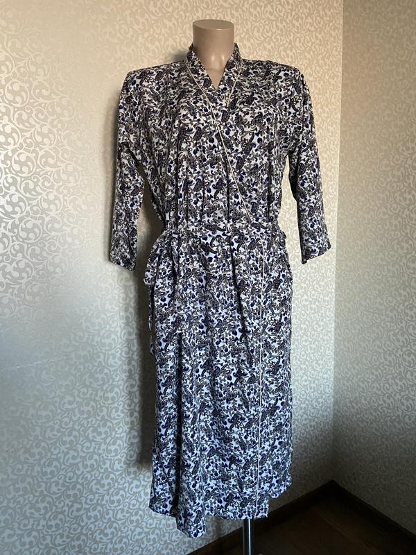 Гарний та якісний халатик Чудовий склад:шовк та котон,є кишеня Пояс та пуговки,можна регулювати Розмір підійде XS-S-M Стан нового Заміри: Плечі-43см Рукав-44см Пог-52см Довжина-116см