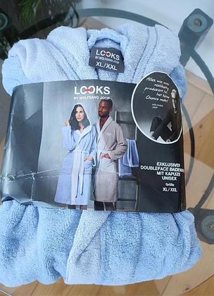 Халат LOOKS by Wolfgang Joop Doubletouch Duo, унисекс♥️ 💙Размер Хс/С,М/Л, Хл/Ххл 💰Цена 1200 грн Характеристики: -Прост в уходе -Приятный и мягкий -Высококачественная вышивка логотипа - Мягкая микрофибра снаружи и абсорбирующая трикотажная хлопковая махра изнутри 📏50% хлопок, 50% полиэстер