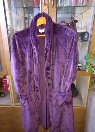 халатик в ідеальному стані .має дві кишені. ніжний на дотик. немає пояса. довжина - 103 см. рукав- 60 см . пог - 54 см.