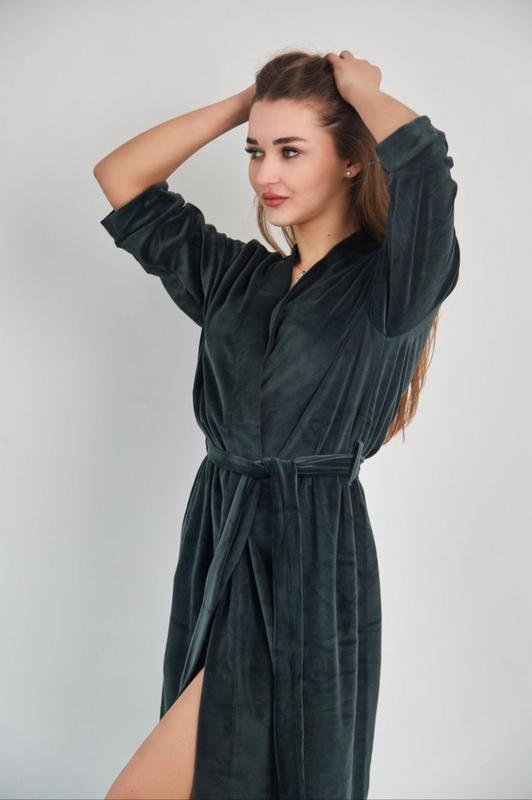 Код 702 Халат жіночий велюр 💫 хакі 🌷Тканина велюр плюш на хлопковій основі 🌷Розміри S M L XL 🌷Внутрішня фіксація 🏷Ціна 850 грн💰💰