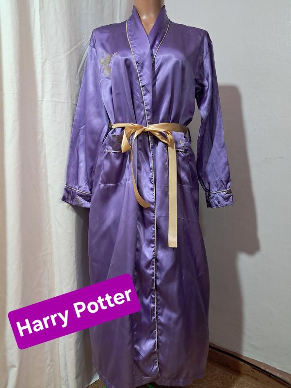 Атласний жіночий довгий бузковий халат harry potter