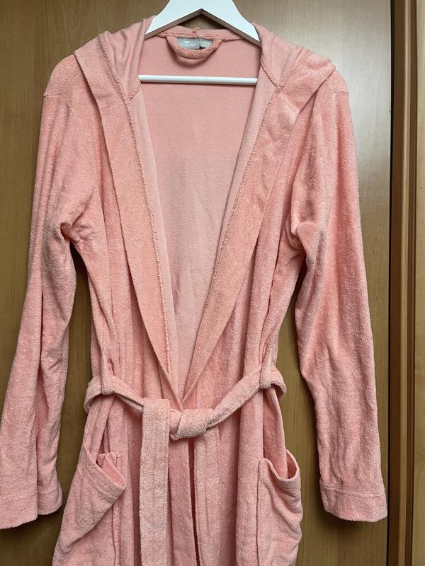 Стан ідеальний.Без дефектів.Теплий.Мякий.Приємний на дотик.По бокам має 2 великі кишені.Насиченого рожевого кольору.халат має капюшон і пасок. Довжина 104см Довжина рукава 62см ПОП 48см ПОГ 60см ПОТ 60см ПОС 65см ПОНИЗ 67см