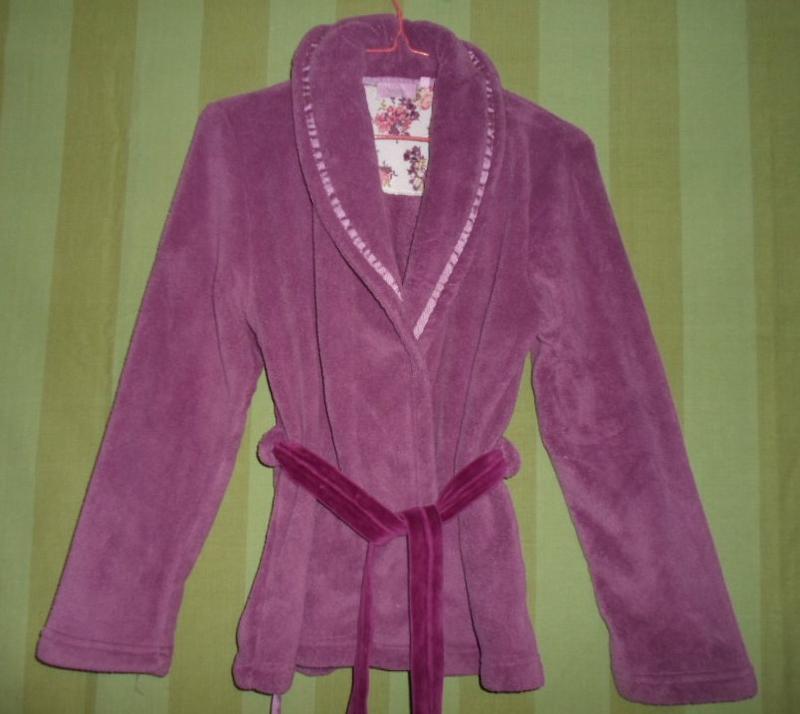 халат-кофта в хорошем состоянии-мало пользованный-не затасканный-не застиранный флис двухсторонний-мягенький-приятный к телу родной пояс утерян-продаю с другим плечи 40см плечо+рукав=12+60=72см ПОГ 57см от полы до полы внизу 138см длина от ворота по спине 64см