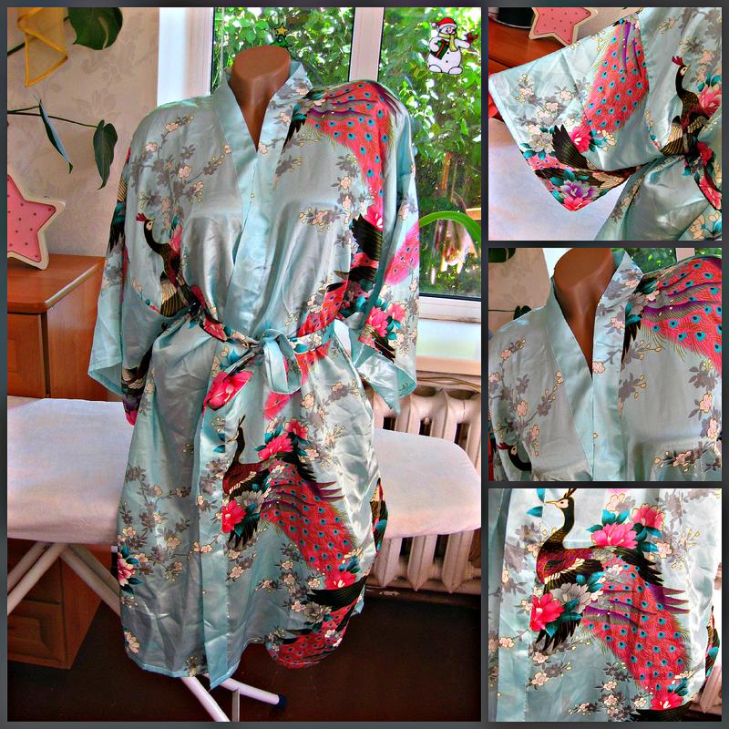 Яскравий красивий, атласний халатик довжина 110 см рукав від шиї 52 см пог 68 см