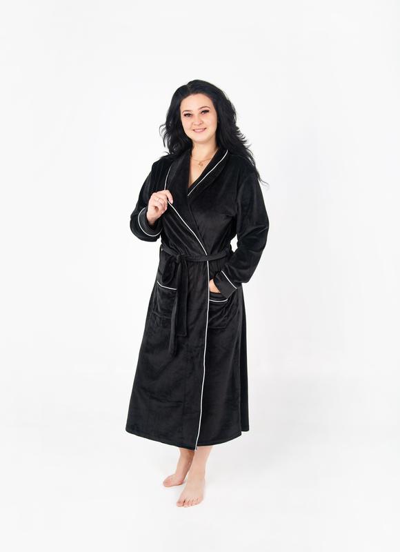 Новинка💥Код 714 Халат велюровий (плюшевий велюр на хлопковій основі) з кантом великих розмірів 💛Довгий рукав! 💛2xl, 3xl, 4xl 💛Довжина 125-130см 💛 Ціна 98 0грн СИНІЙ, ГРАФІТ, ІЗУМРУД, БЕЖ, ШОКОЛАД, Гранат, чорний
