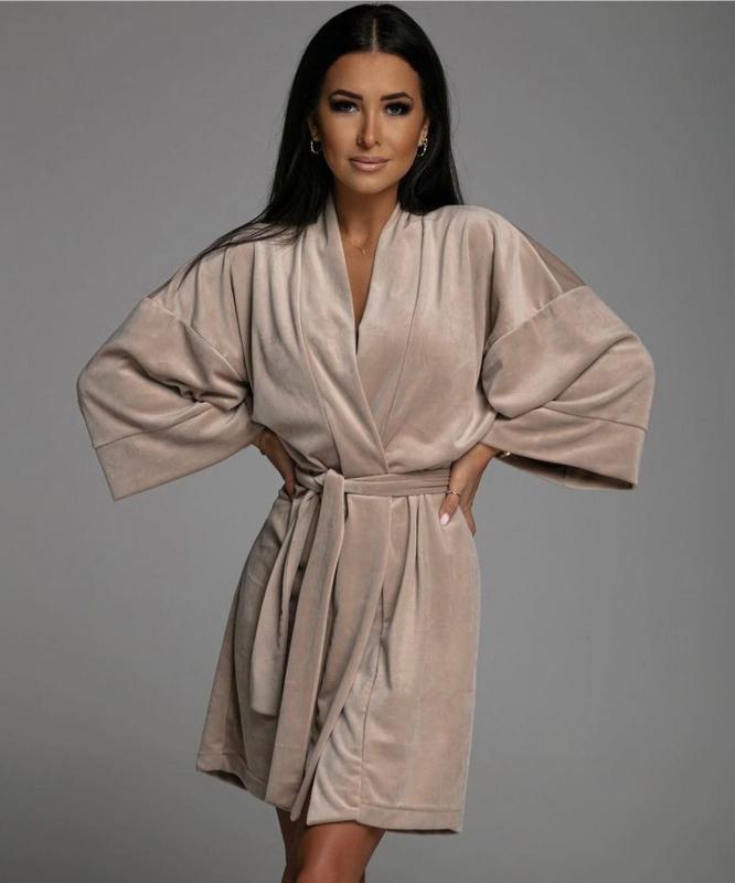 Халат Розміри: 42-46, 48-52 Тканина: турецький велюр( м'який, приємний до тіла, не скочується, не деформується після прання) Кольори: світлий беж, шоколад, синій