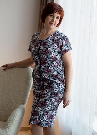 В наявності є в різних кольорах та принтах. Легкий жіночий халат вільного крою з коротким рукавом та округлим вирізом, модель виготовлена з принтованого полотна "Кулір-реактив", яке є натуральним за складом і може давати усадку після прання, для зручності застібається на блискавку та має кишені. Полотно: кулір-реактив Склад: 100% бавовна Рекомендації з догляду: прати при температурі не більше 30°C. Допускається прання у режимі "ручне" або "делікатне