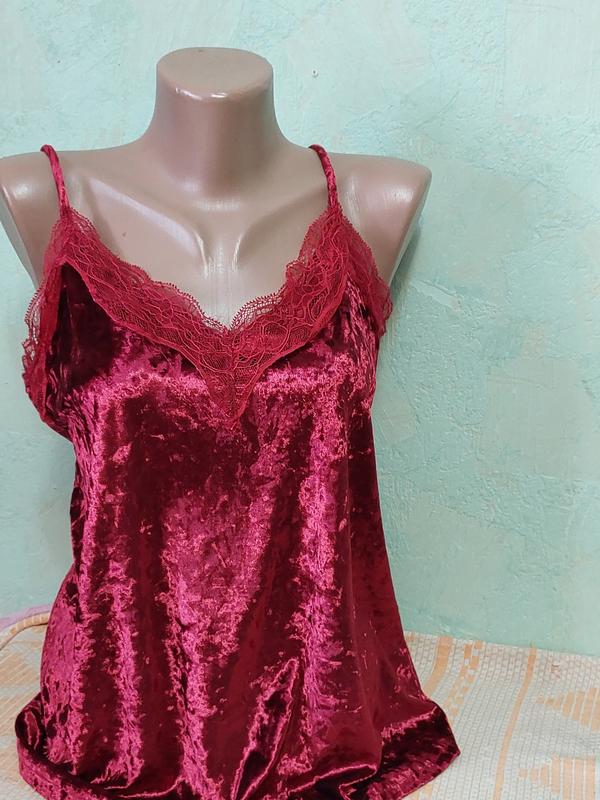 велюрова оксамитова майка нічна, в ідеальному стані, довжина по спинці 63 см, ПОГ 48 см розмір вказаний М склад поліестер бренд MARTA BARCALA