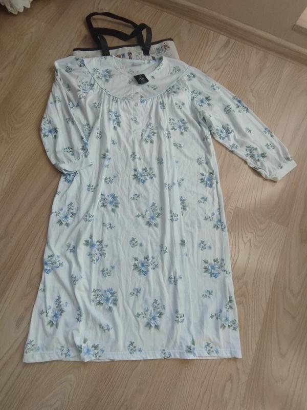 Ночнушка нічна сорочка нова 40-42 світло голубого кольору в квітковому принті, тканина поєднує хлопок і поліестер, довга.