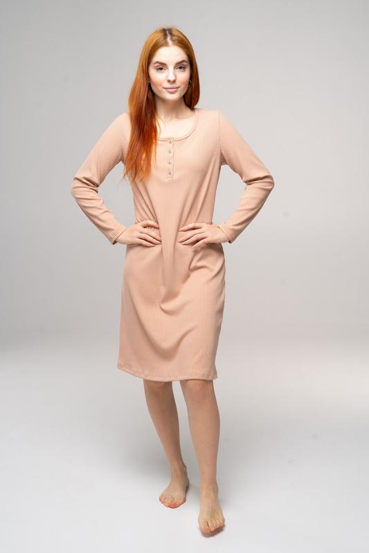 Жіноча нічна сорочка лапша з довгим рукавом пудрового кольору, s
