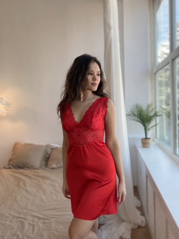 Жіноча шовкова сорочка, чколір ервоний, довжина вище колін.регульовані бретелі.