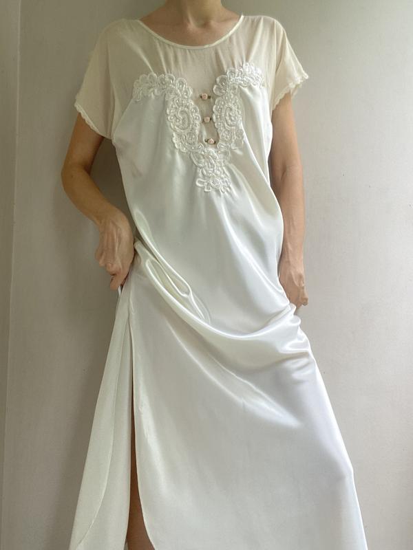 Вінтажна біла нічна сорочка сукня домашня атласна прозора 80-ті ретро стиль