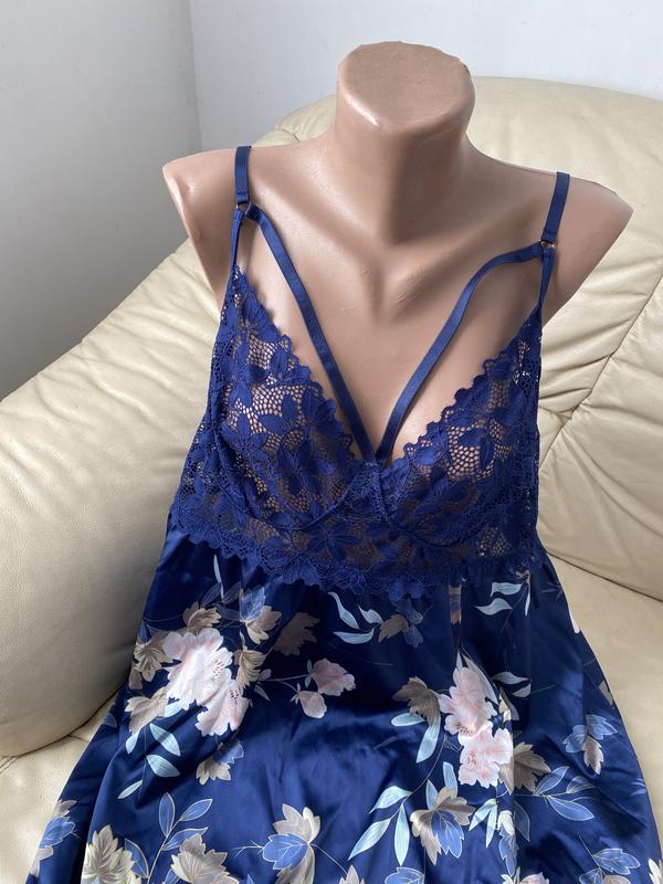 Продам темно- синю нічну сорочку з мереживним ліфом і квітковим принтом