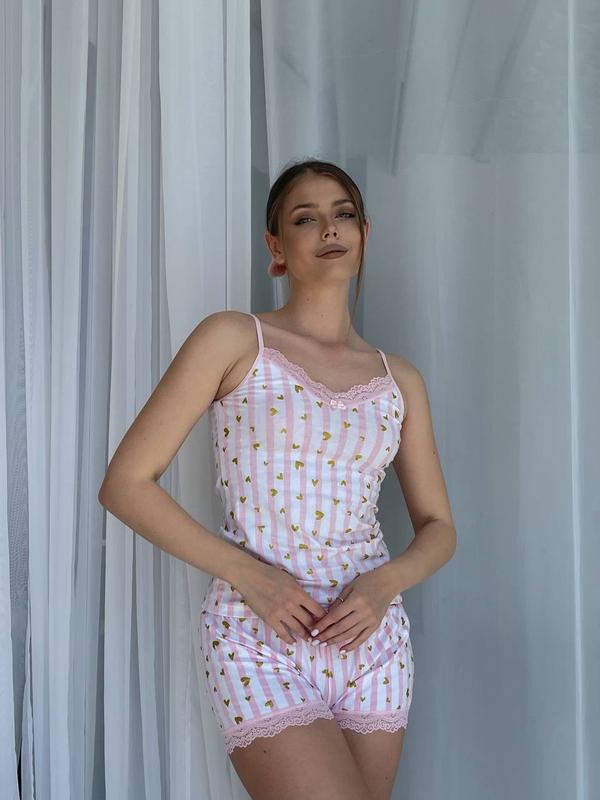 Піжамний комплект майка+шорти Розмір від М до 2XL ✅Арт SM2086/2-рожевий