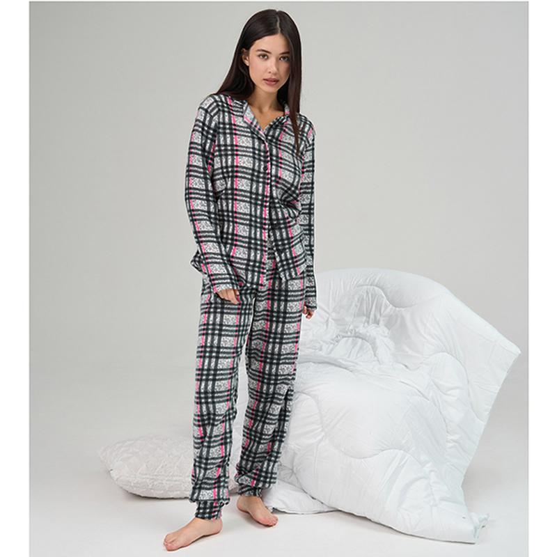 Жіноча піжама сорочка і штани в клітинку на флісі 13951