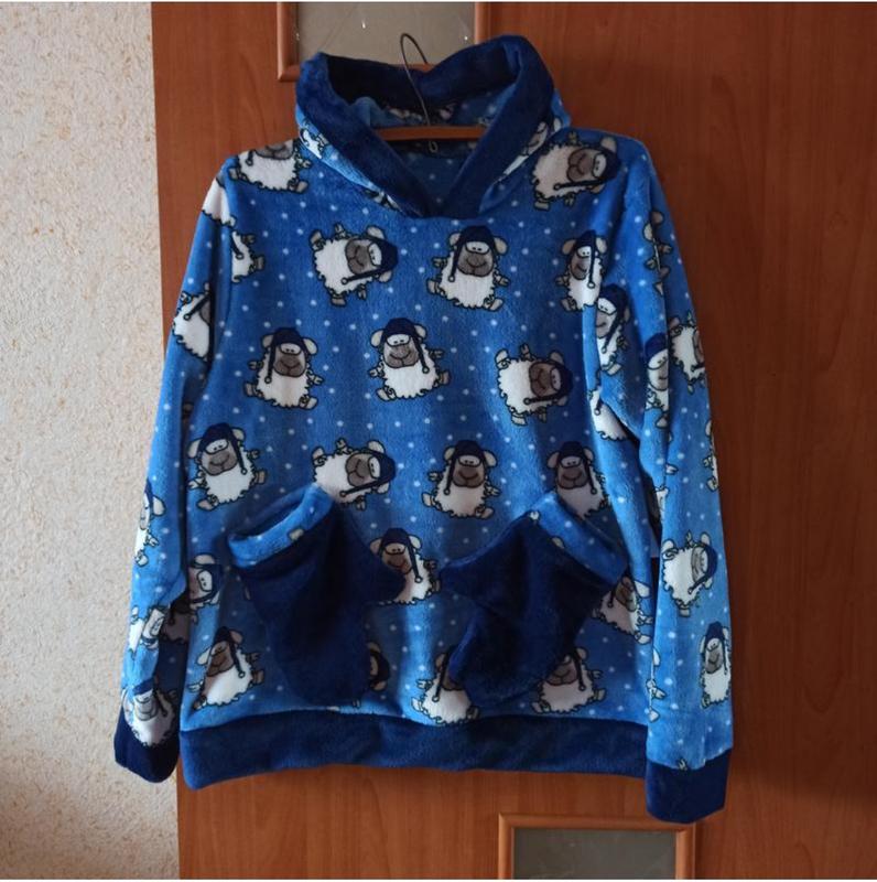 махровая пижамака, новая, размер 46-48, с капюшоном и кармашками