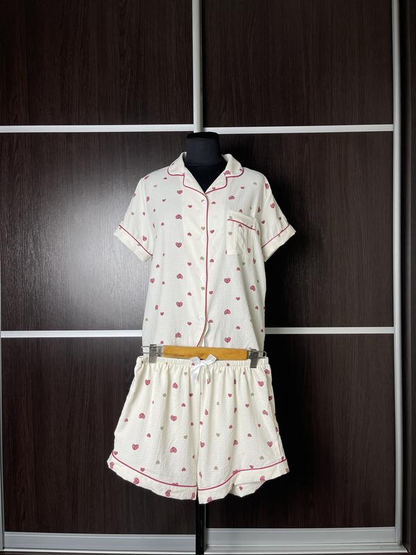 Жіноча нова мила ночнушка піжама з сердечками сердце рубашка та шорти комплект розмір л