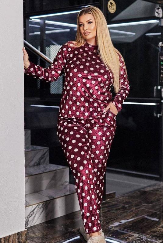 Елегантний предмет домашнього гардероба не тільки зігріє в холодні дні, але й додасть відчуття розкоші та неперевершеного комфорту. В НАЯВНОСТІ КОЛІР БОРДО: (ХЛ, ХХХЛ). В НАЯВНОСТІ КОЛІР СИНІЙ: (ХХЛ, ХХХЛ). Велюрова піжама "Raichel" виготовлений із ніжного тюрецького велюру. Він ніжно обіймає тіло, не заважаючи рухам і не доставляючи жодного дискомфорту. Країна виробник: Україна Матеріал: Турецький велюр Склад: Поліестр,Еластан ЗАМІРИ: == ВЕРХ == Розмір: XL Напівобхват грудей: 51 см Напівобхват талії: 51 см Напівобхват стегон: 51 см Довжина рукава: 69 см Довжина виробу: 67 см Розмір: 2XL Напівобхват грудей: 54 см Напівобхват талії: 54 см Напівобхват стегон: 54 см Довжина рукава: 71 см Довжина виробу: 69 см Розмір: 3XL Напівобхват грудей: 59 см Напівобхват талії: 59 см Напівобхват стегон: 59 см Довжина рукава: 73 см Довжина виробу: 71 см == НИЗ == Розмір: XL Напівобхват талії: 36 см Напівобхват стегон: 53 см Довжина виробу: 105 см Довжина кроку: 72 см Посадка: 32 см Розмір: 2XL Напівобхват талії: 39 см Напівобхват стегон: 56 см Довжина виробу: 105 см Довжина кроку: 72 см Посадка: 32 см Розмір: 3XL Напівобхват талії: 42 см Напівобхват стегон: 59 см Довжина виробу: 106 см Довжина кроку: 73 см Посадка: 33 см