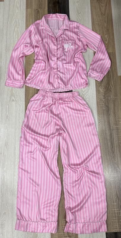 Просто няшна піжама Barbie Заміри верх:ді 67,ог 60, ширина плеча 11,5, довжина рукава 62, ширина по низу 60 низ:ді 109,от 38 (на гумці), об 70, ширина холоші внизу 32