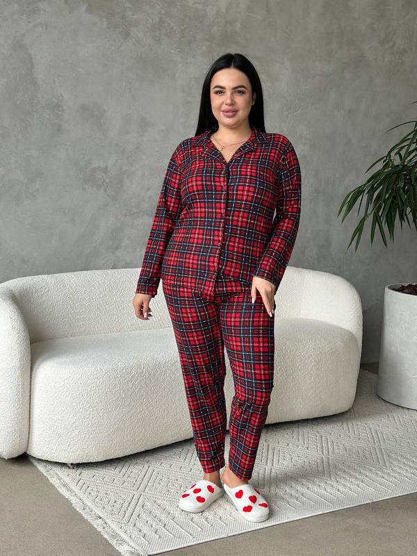 🎉☃️🎄Створюємо новорічний настрій ☃️🎄 Стильна, сучасна та максимально комфортна та приємна піжама-домашній костюм 😻 DO3801 👆🏻чудовий варіант для відпочинку та фотосесій 🎉🎄 • Комплект складається з кофтинки та штанів на резинці; • Розміри 2XL, 3XL, 4XL •Висока зручна посадка штанців •Тканина тоненька та мʼяка мікробайка •Виробник Туреччина Розмірна сітка: (маломірять!) 2XL : груди 102-112, стегна 102-114 см 3XL : груди 107-116, стегна 112-120 см 4ХL: груди 113-119, бедра 118-126 см