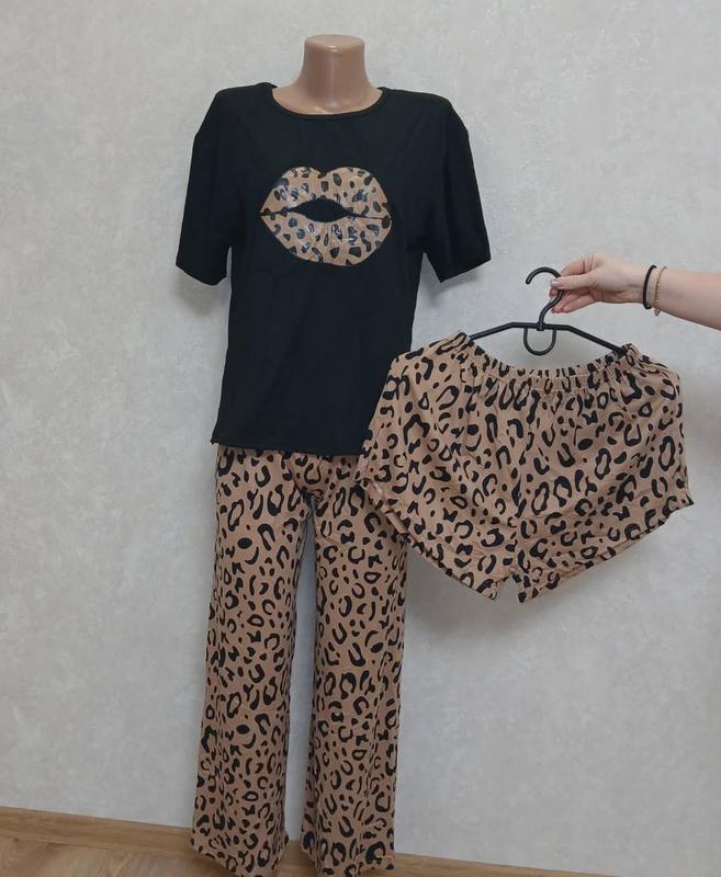 Тройка (футболка, шорты, штаны) размеры 46 48 50 52 материал коттон+ спандекс