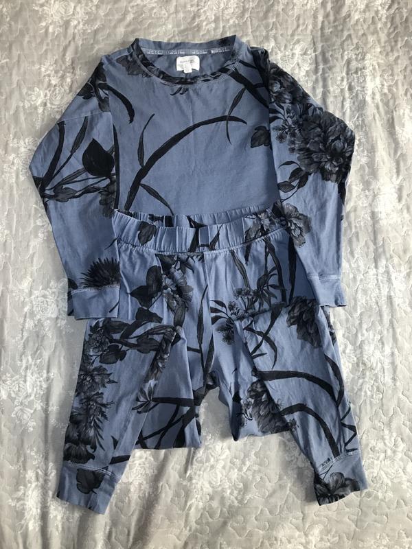 Піжама в ідеальному стані, вказано розмір XS, але орієнтуйтеся на заміри. Кофта- довж 51, шир 52, йде як оверсайз Штани- талія резинка 35, довж 97. Тканина дуже приємна.