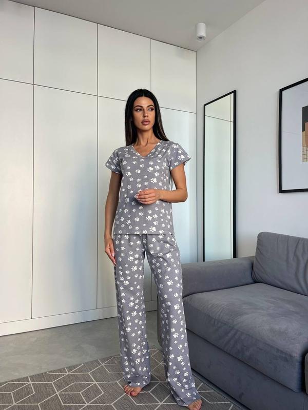 Модель 0284 Піжама Тканина : трикотаж Кольори сірий , білий , рожевий Розміри 42-44,46-48