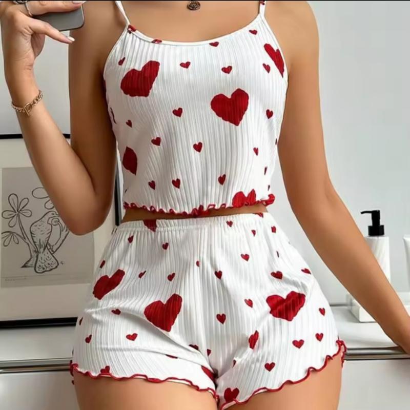 Піжама жіноча. Біла в червоне сердечко Розмір М