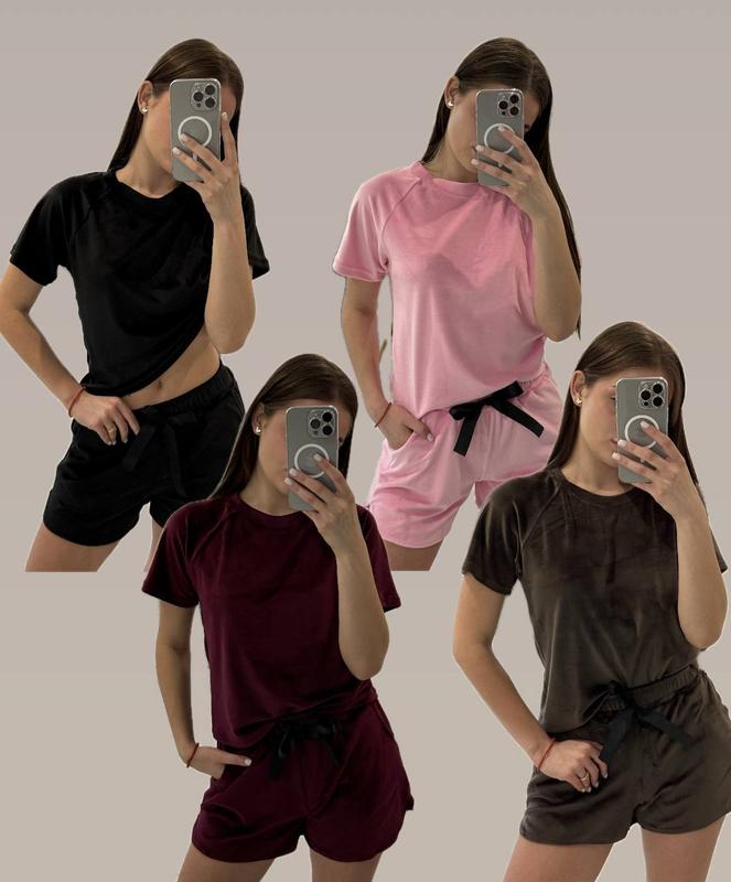 Велюровая пижама футболка с шортами в расцветках рр 42-52