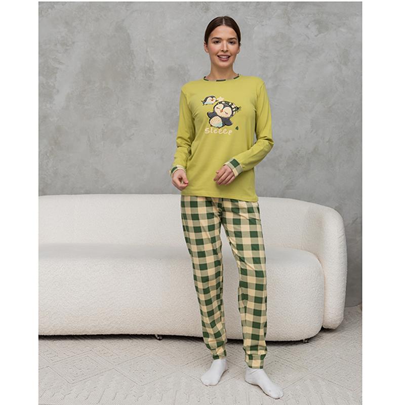 Піжама жіноча штані і джемпер салатовий пингвіни 18349