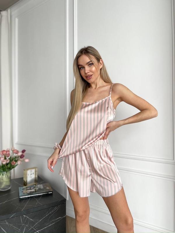 Новинка❤️❤️❤️ Вже в наявності🌹 Шовкова піжамка в стилі Victoria’s Secret з резинкою у комплекті. Кольори як на фото у сіру та білу полоску. ▫️Мод 068 Фото реал😍 ▫️Тканина - 95% сатін,5 % лайкра ▫️Розміри - 42-44,46-48 Повномірні ▫️Кольори - як на фото.