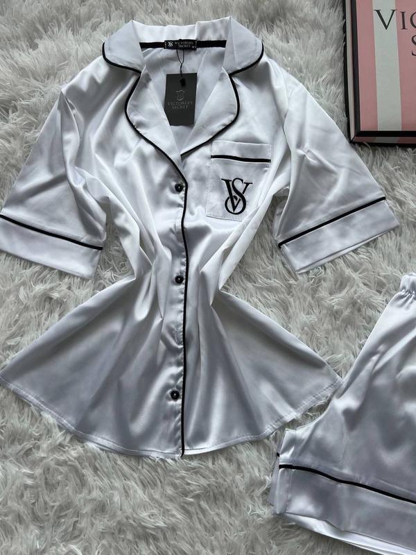 Модель 1710 Піжама. Декорована вишивкою. Реал фото. Тканина: Шовк. Відмінна якість! Білий 46-48