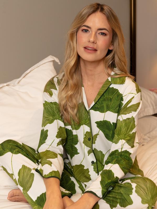 Піжама жіноча cyberjammies olive 5005-5006 з оливковим листям із трикотажу натуральна стил...