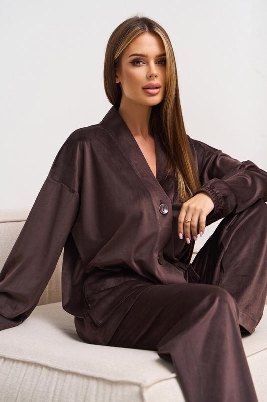 Темно-коричнева велюрова піжама на гудзиках артикул: 14324.a _темно-коричневий