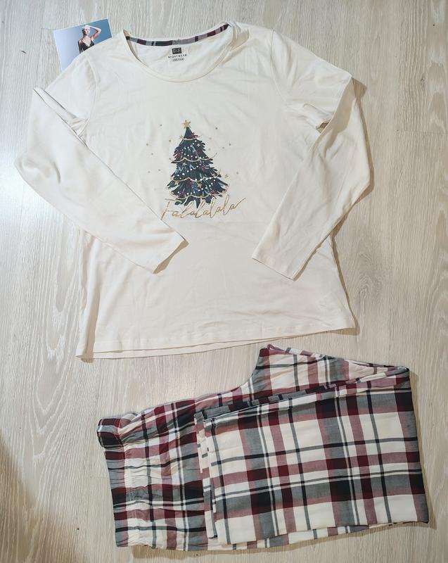 Піжама F&F XXL стан нової, не прала. на етикетці ще залишились наклейки 100 % бавовна Кофта. Довжина - 70 см. ширина в плечах - 39 см. довжина рукава - 63,5 см. ширина під руками - 57 см. Штани. Довжина - 102 см. напівталія - 47 см. глибина - 34 см. напівбедра - 57 см. 100 % бавовна. Трикотаж тонкий, середньої товщини.