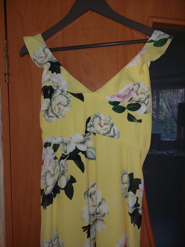 Сукня в гарному стані. Приємного жовтого кольору. Брителі регулюются, заміри є на фото. Розмір 38. На підкладці. Відправлю укрпоштою або новою поштою після сплати на картку, або через застосунок