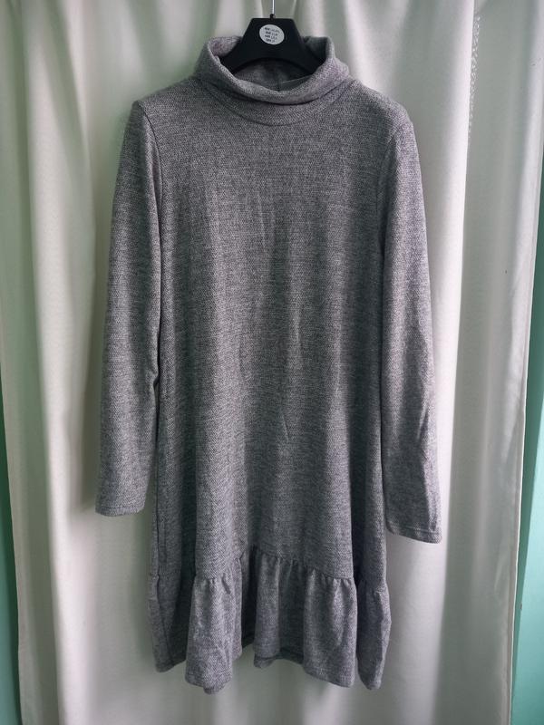 Стильне плаття з високим воротом Сірий колір Прямого крою Мяке та приємне,завдяки віскозі у складі
