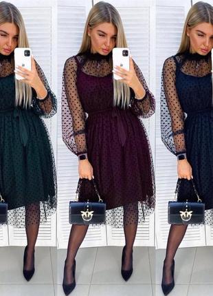 Модель kt 549 Жіноча подвійна сукня Розмірний ряд 42-44;46-48 Нижня сукня комбінація на бретелях з софту Верхня сукня з горошку флок Кольори чорний,марсала, ніжно-голубий та ізумруд У комплекті поясок Супер якість Ціна 689 грн🏷