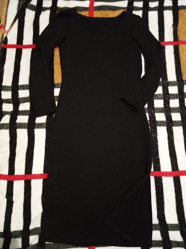плаття тонка вязка. лягає по фігурі. є невеликий розпах збоку довжина 100см
