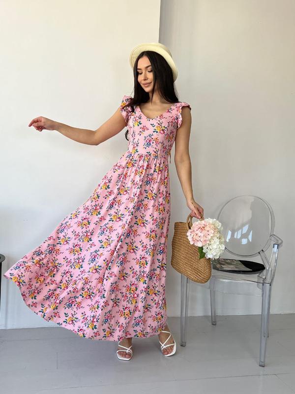 Платье Мод 176 Тканина льон принт Размеры 42-44, 46-48,50-52 Платье из качественной легкой натуральной ткани лен, с фигурным вырезом и двойной рюшей на плечках, по спинке застегивается на потайную молнию.