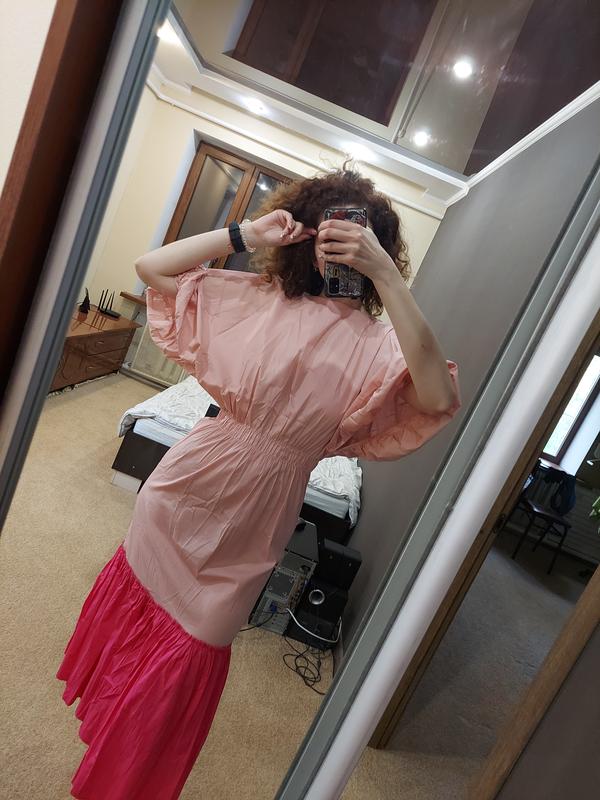 дивовижна сукня трансформер. можно носити на обидві сторони. виглядає фантастично. шикарні широкі рукави . чудове поєднання кольорів. натуральна тканина, приємна до тіла.