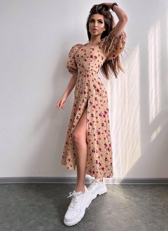 👆Сукня - міді зі шнурівкою на спинці та розрізом на ніжці Тканина - муслін Розміри : S, М Країна виробник Україна 🇺🇦
