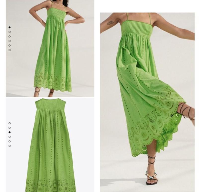 Зелена довга сукня з прорізної вишивкою на тоненьких бретелях з нової колекції zara розмір...